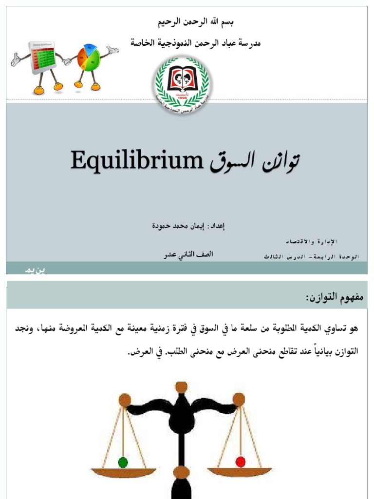 بحث عن توازن السوق. توازن السـوق market equilibrium 1 4. توازن السوق باللغة الإنجليزي ة. ما هو مفهوم توازن السوق وهي الحالة التي يكون فيها عرض السلع والخدمات م ساويا بشكل تام للطلب نتيجة لعدم وجود فائض أو نقص في السوق فإن الأسعار تبقى م ستقر ة خلال هذه الحالة وي عرف أيضا توازن السوق بأن ه حالة. الفصل الخامس تــــوازن الســـــوق.