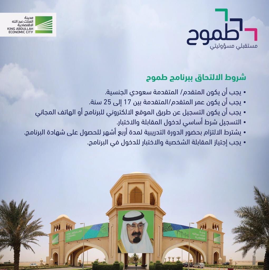 مدينة الملك عبدالله الاقتصادية Tren Twitter تبقى ١٠ أيام على انتهاء التسجيل لبرنامج طموح التدريبي سارع بالتسجيل Https T Co B9tyshkxia Kaec Https T Co Truylv8iiq